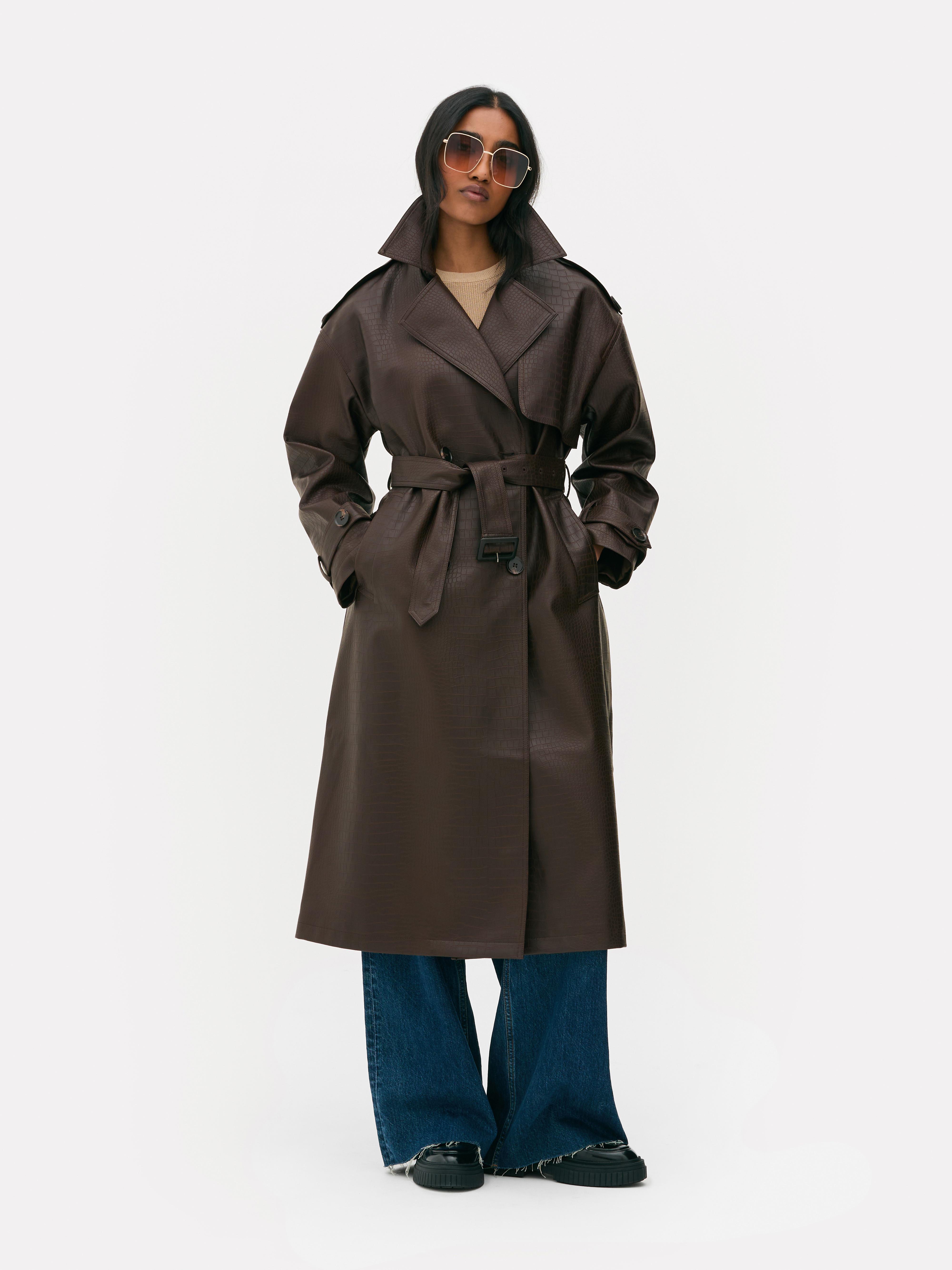 Womens Brown Croc Effect Trench Coat Primark Very well made.