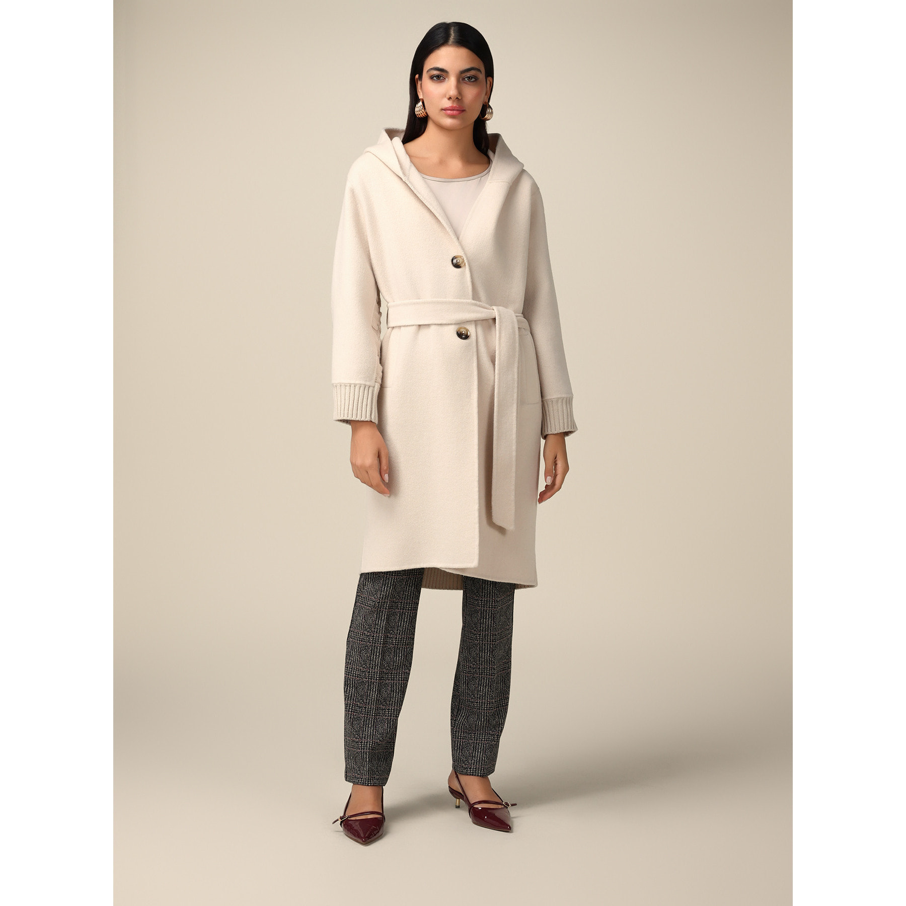 Motivi Cappotto lungo con cintura Bianco Very well made.