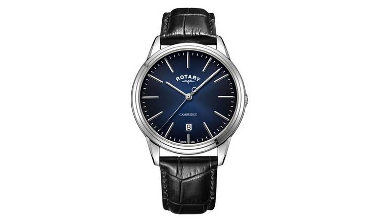 Buy Rotary Men s Black Leather Strap Blue Dial Watch Men s watches Argos Very well made.