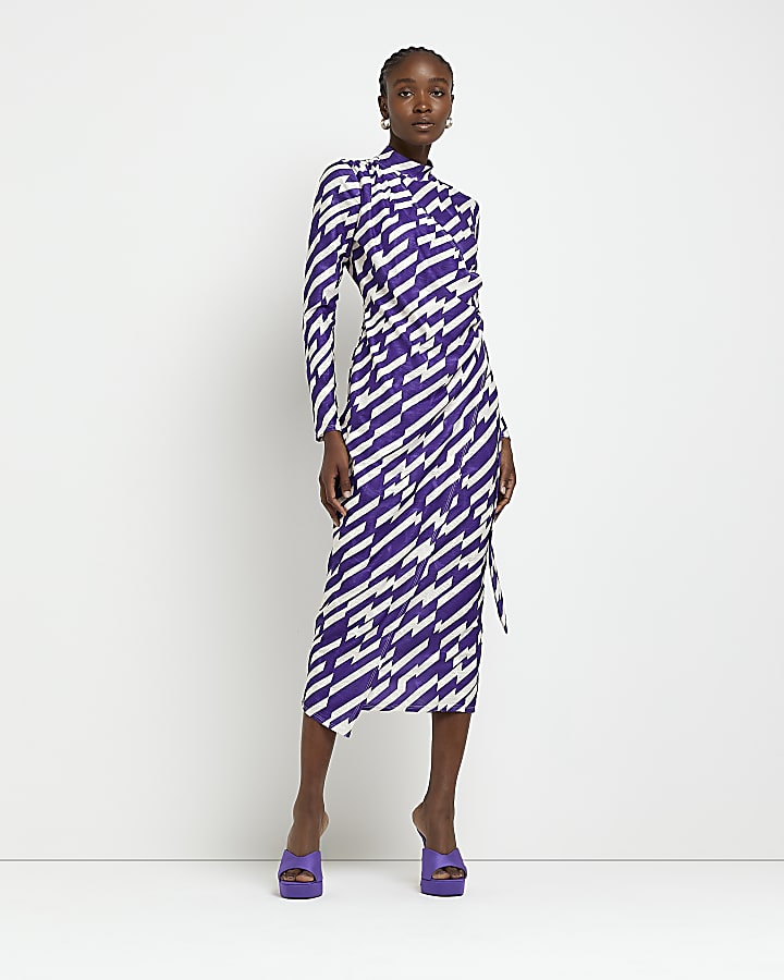 Purple long sleeve wrap bodycon midi dress River Island Very well made.
