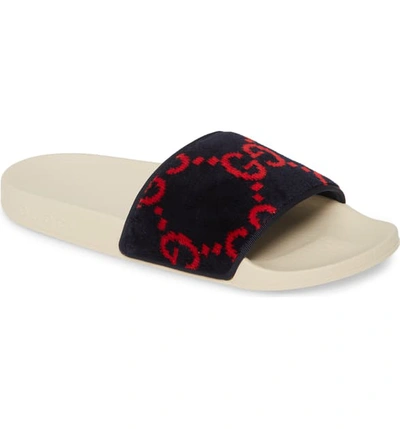 Gucci Pursuit Terry Cloth Logo Pool Slide Sandals In Blue Other ModeSens Very well made.