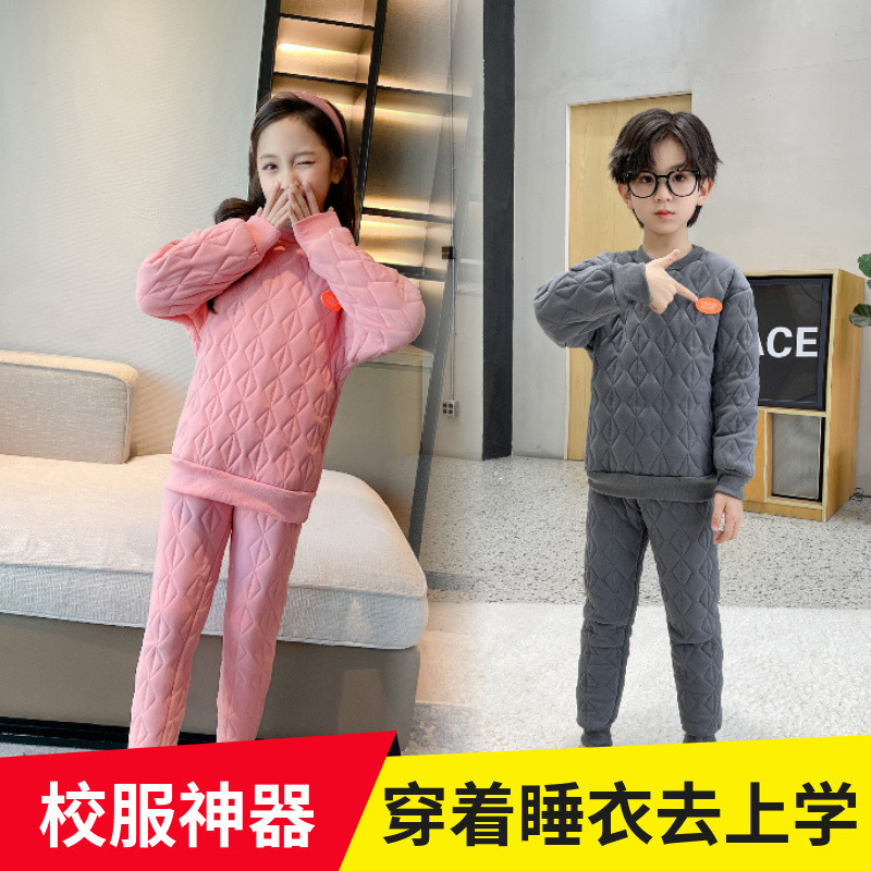Winter pure cotton children s thermal underwear set three layer quilted baby high waist belly protection plus velvet thickened autumn clothes and long pants 7 MART Very well made.