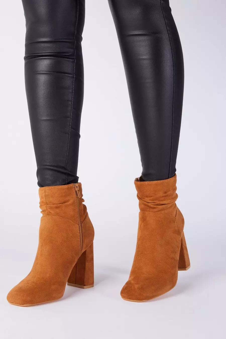 Tan Faux Suede Ruched Ankle Boot QUIZ Clothing Very well made.