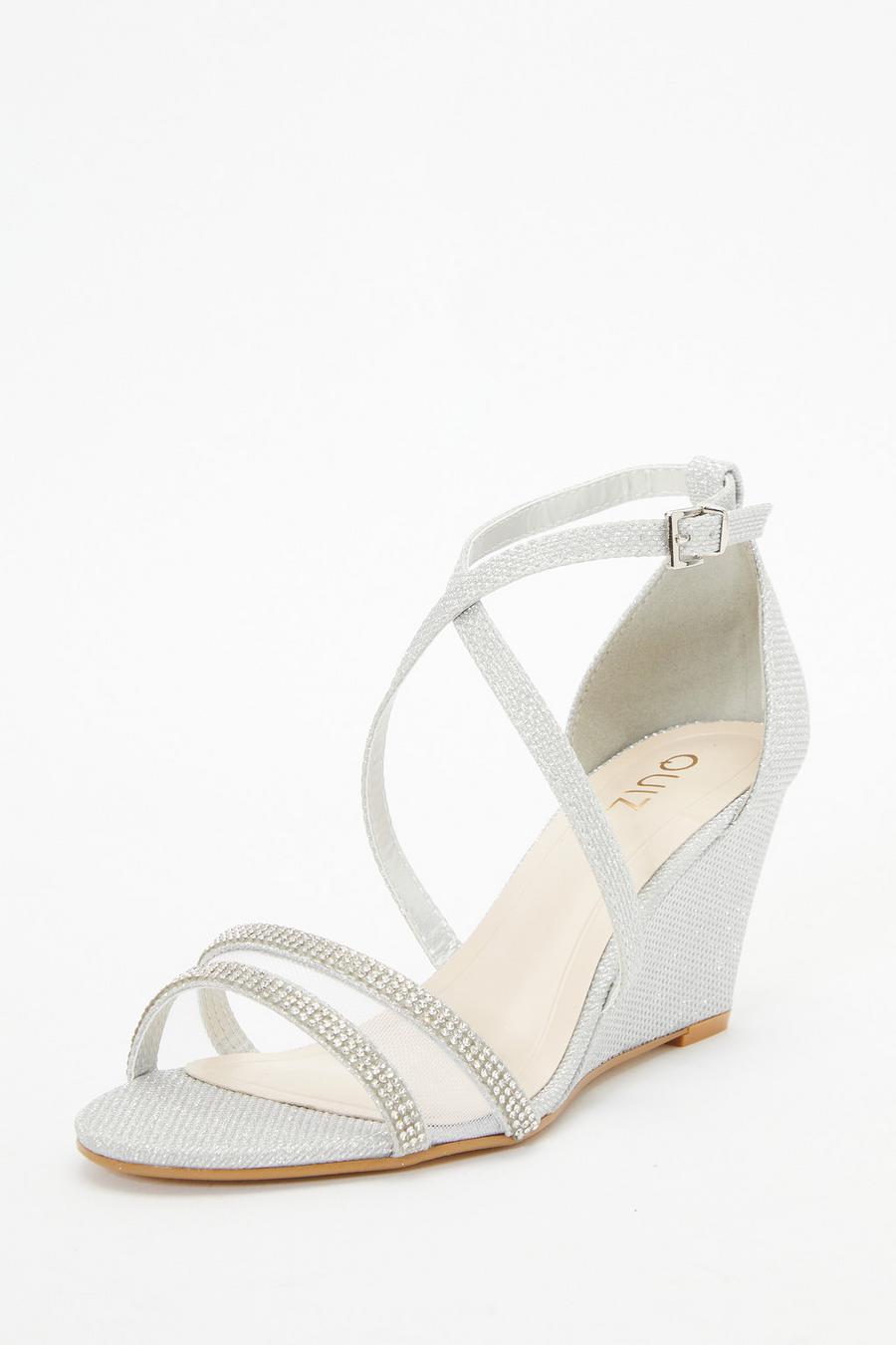 Quiz White Faux Leather Diamante Woven Wedges Matalan Very well made.