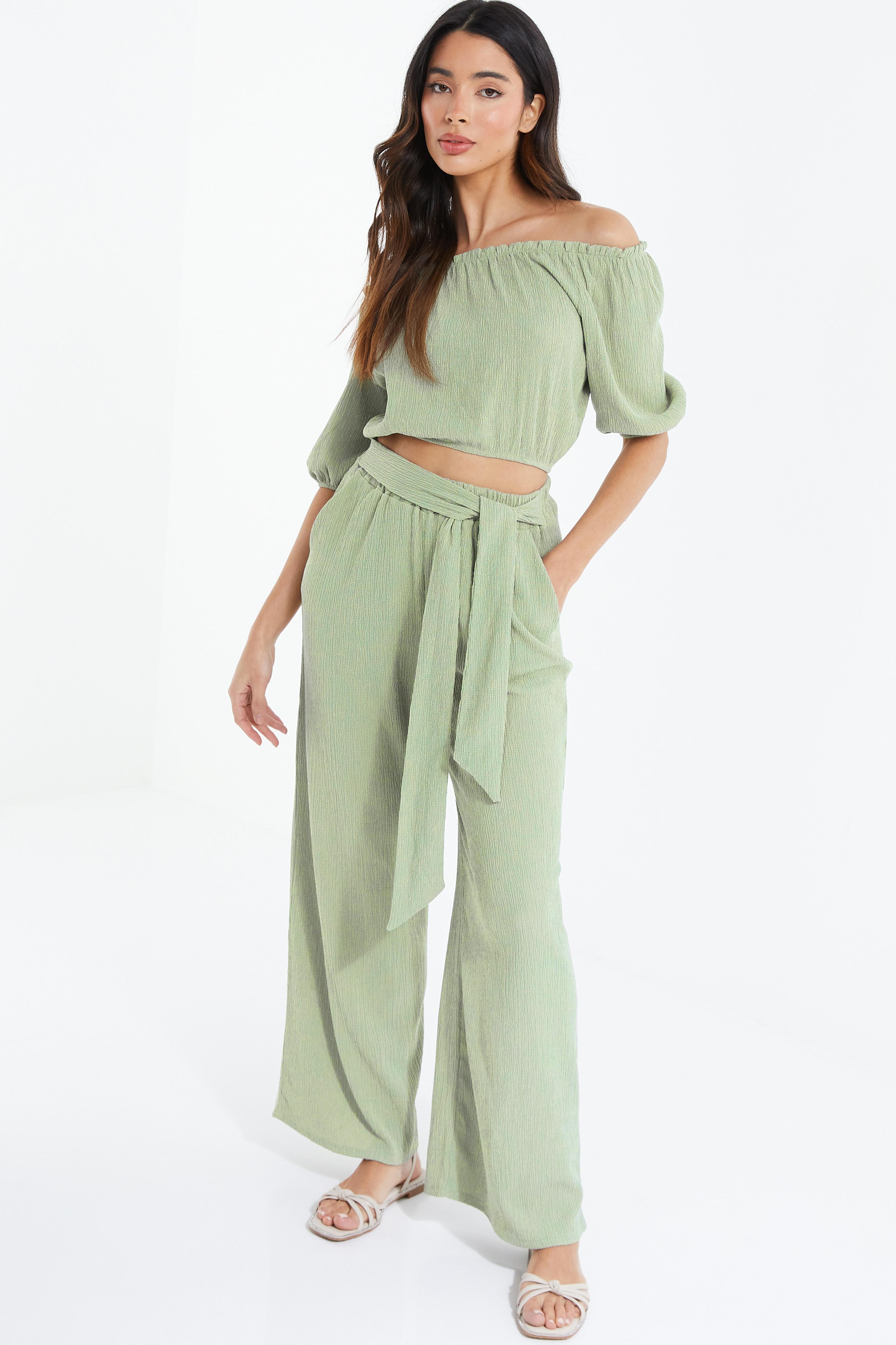Khaki Crinkle Wide Leg Trousers QUIZ Clothing Very well made.