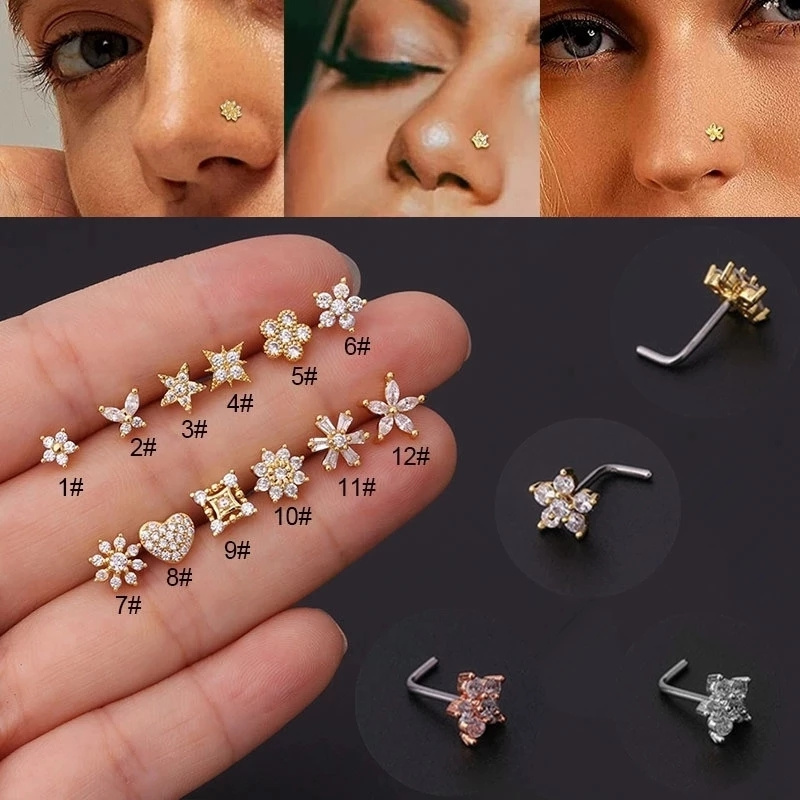 simple maple leaf nose stud inlaid zirconia region name Very well made.