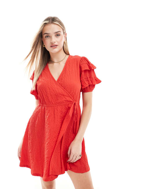 Wednesday s Girl short sleeve wrap detail mini dress in red ASOS Very well made.