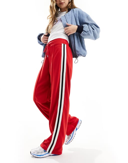 River Island Side stripe wide leg joggers in red Very well made.