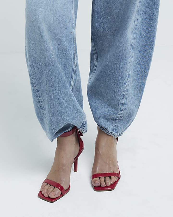Red wide fit patent clasp heeled sandals Very well made.