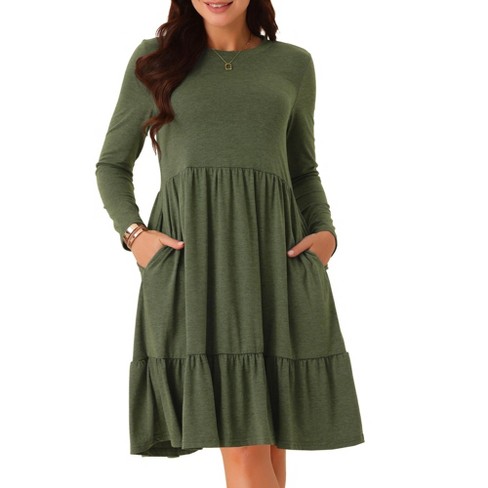 Moyabo Plus Size Summer Dresses Women s Short Sleeve Loose Casual Dress with Pockets Knee Length Dress for Women Army Green X Large ShopStyle Very well made.