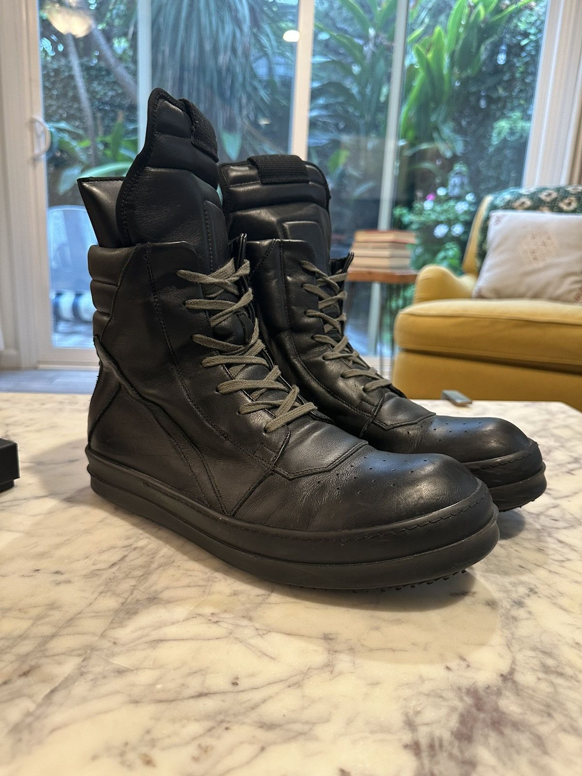 triple black geobaskets on feet r Rickowens Very well made.