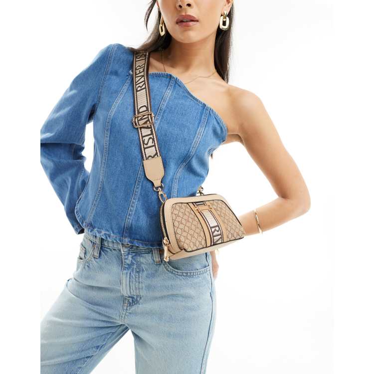 Cra wallonieShops Chanel 2.55 Flap Bag River Island Ri monogram cross body bag in beige Very well made.