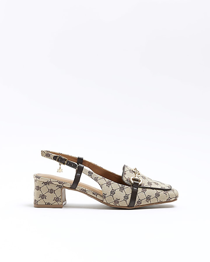 Beige RI monogram block heeled court shoes River Island Very well made.
