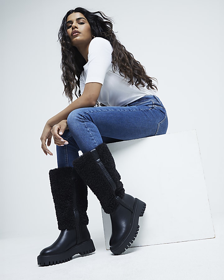 Black Borg High Leg Boot River Island Very well made.