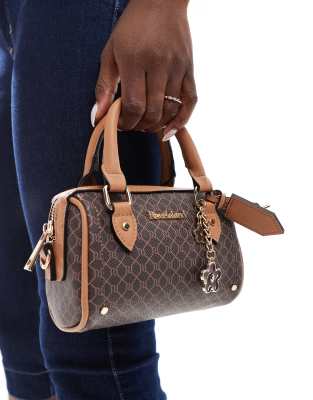 River Island mini monogrammed bowler bag in dark brown Very well made.