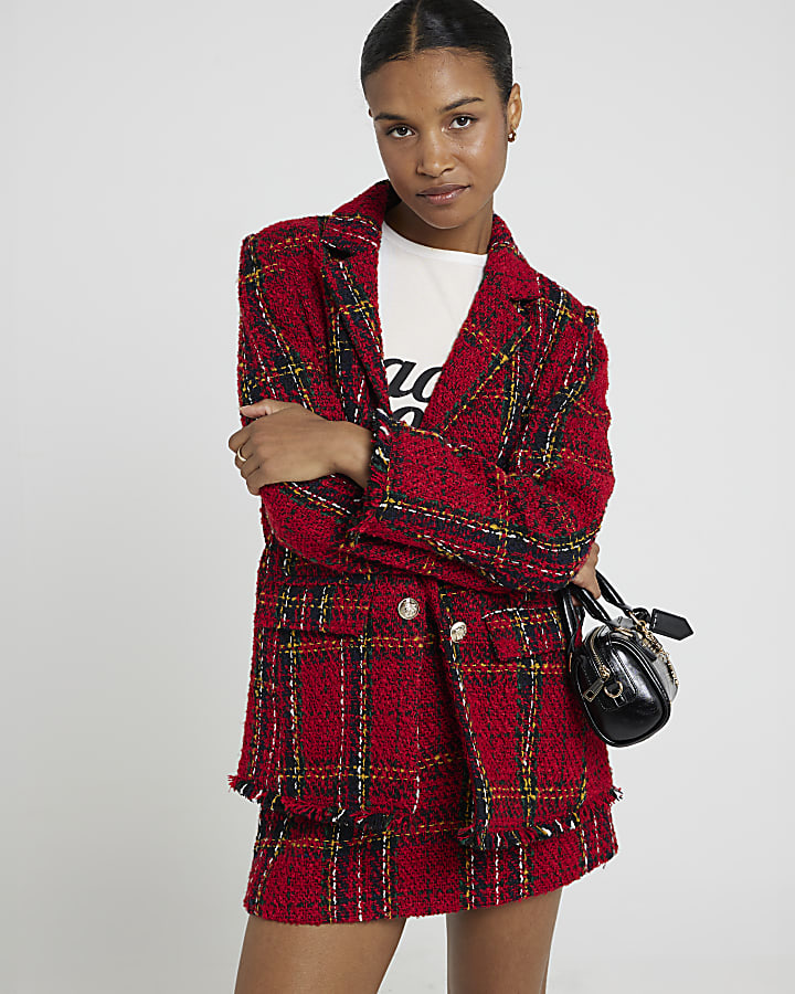Red tartan boucle blazer River Island Very well made.