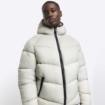 Stone regular fit hooded puffer jacket River Island Very well made.