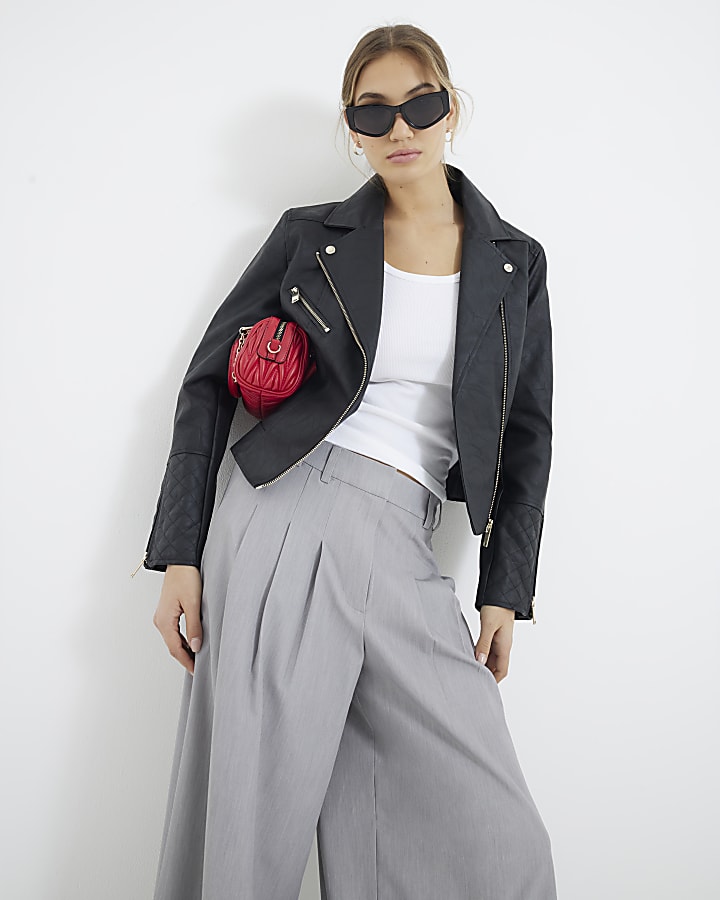 Black Faux Leather Zip Biker Jacket River Island Very well made.