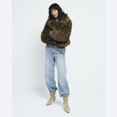 Brown Faux Fur Short Plush Jacket River Island Very well made.