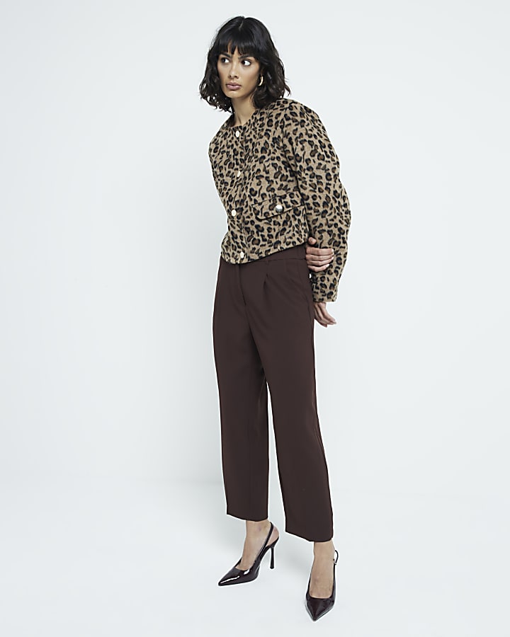 Brown pleated straight trousers River Island Very well made.