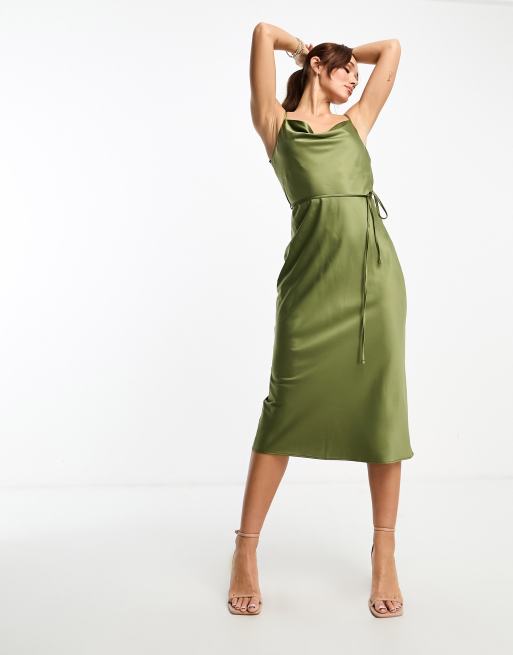 River Island cowl neck satin slip dress in khaki Very well made.