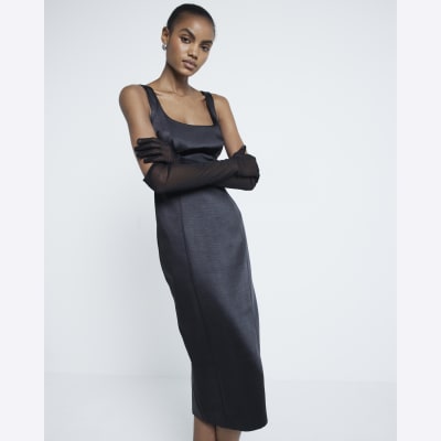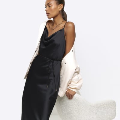 Black satin cowl neck slip midi dress River Island Very well made.