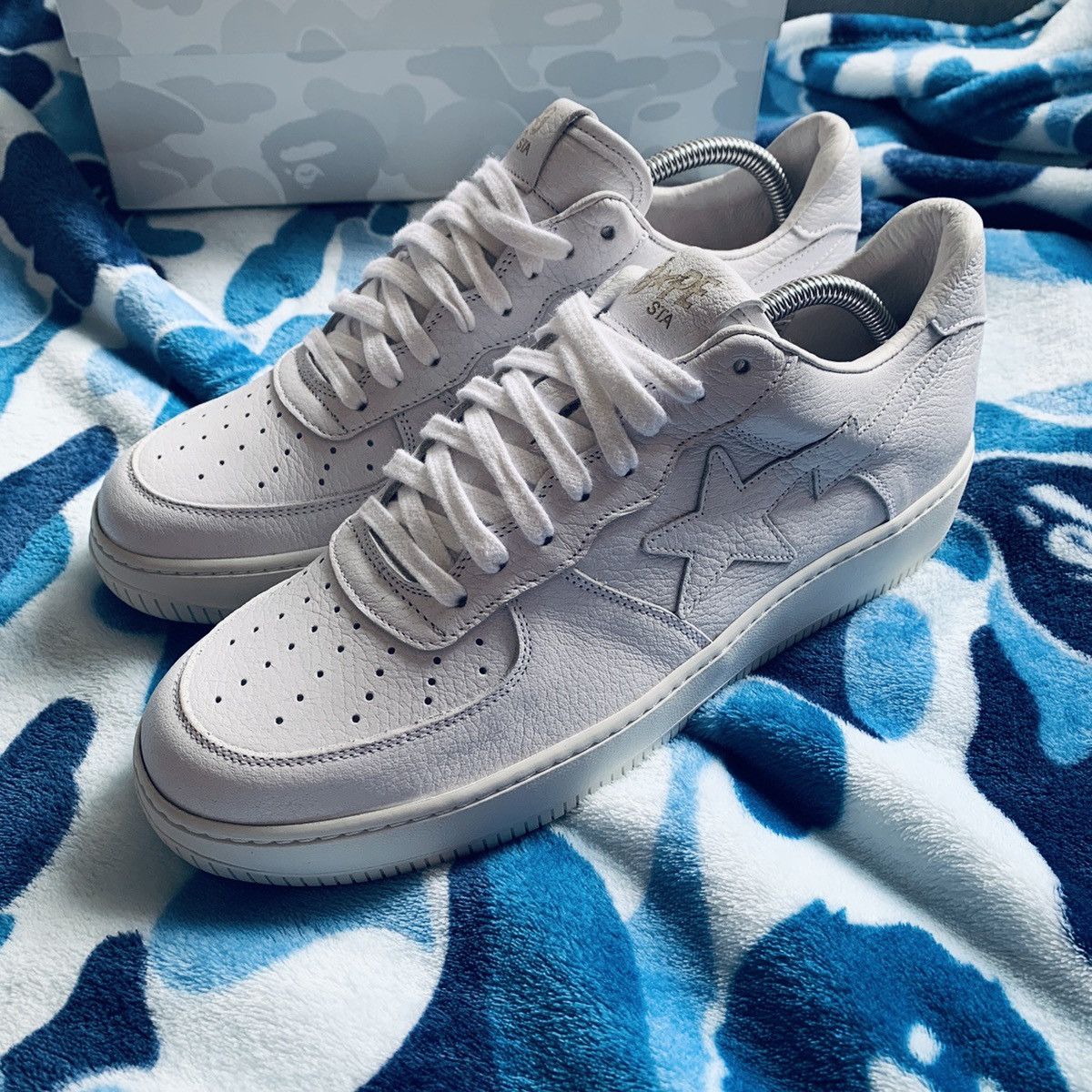 BEATERS 2016 A Bathing Ape x Ronnie Fieg White Leather Bapesta Size 8 Comes With Box Extras Missing Shoe Trees 9 10 Condition Flaws Slight Toe. Instagram Very well made.