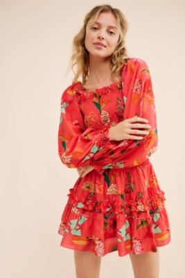 Long Sleeve Square Neck Smocked Ruffle Mini Dress Nuuly Very well made.