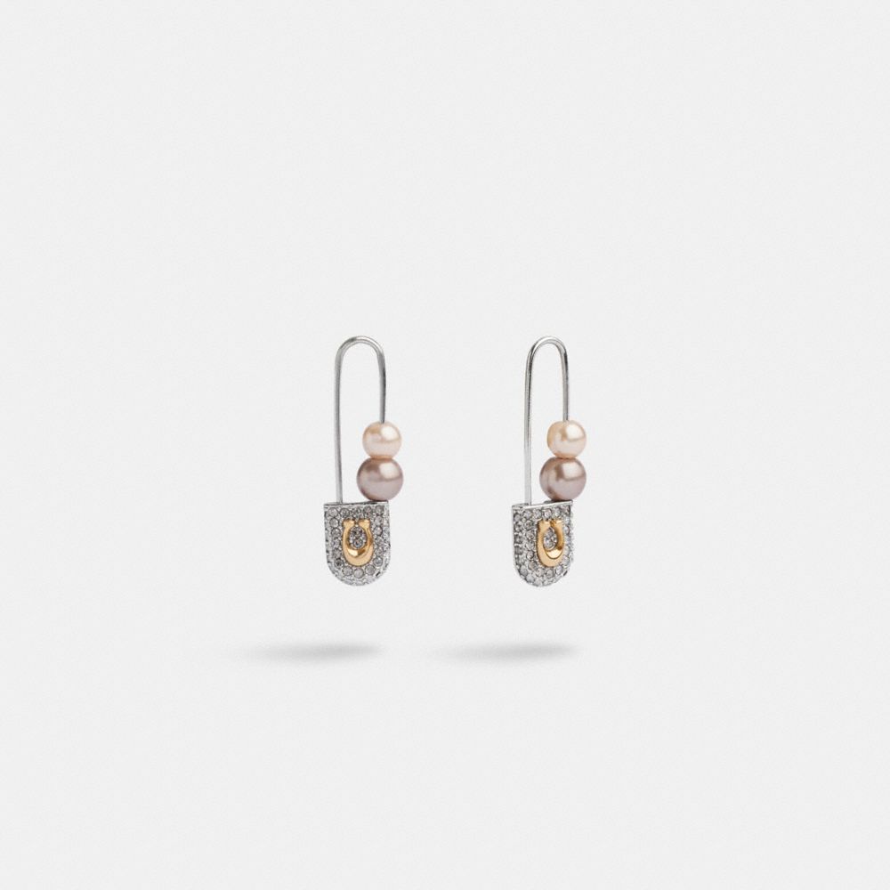 COACH Signature Safety Pin Pearl Earrings Very well made.