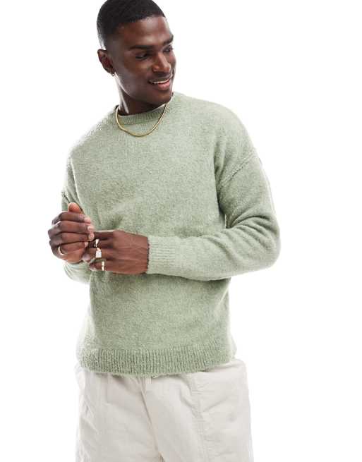 ASOS DESIGN relaxed knit lightweight sweater in sage green boucle texture Very well made.