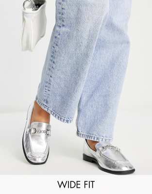 Topshop Wide Fit Lola Mocassins en cuir avec chaine Argente ASOS Very well made.