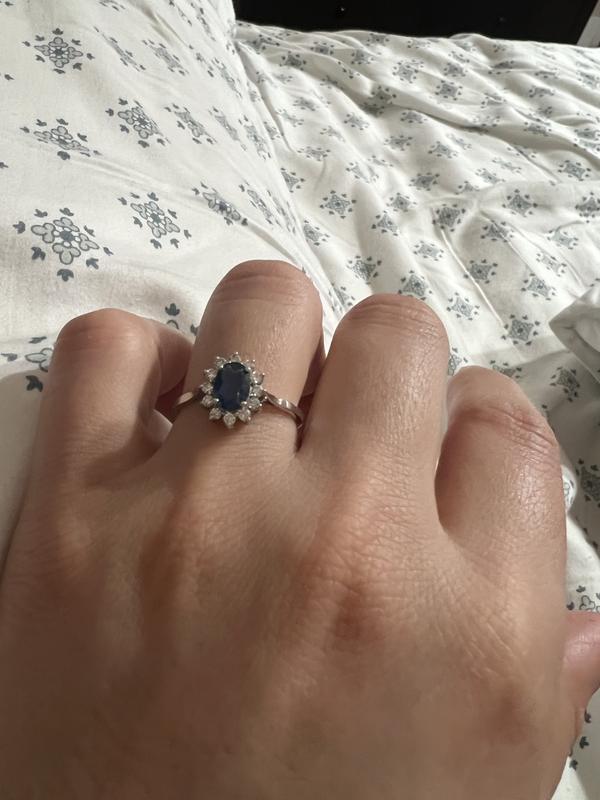 Oval Cut Blue Sapphire 0.23 CT. T.W. Diamond Halo Ring in 14K Gold Sam s Club Very well made.