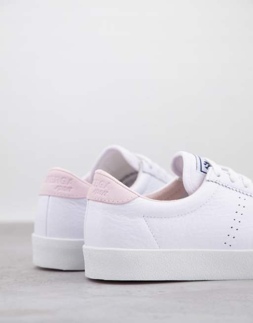 Superga 2843 Scarpe da ginnastica bianche in pelle con linguetta a contrasto rosa sul tallone ASOS Very well made.