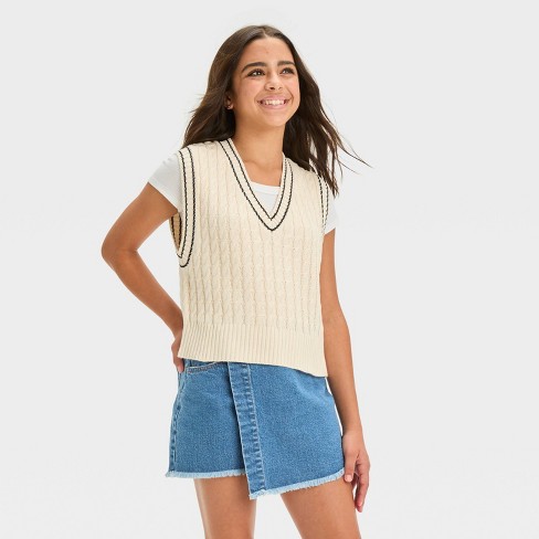 Girls Sweater Vest art class Cream XS Very well made.