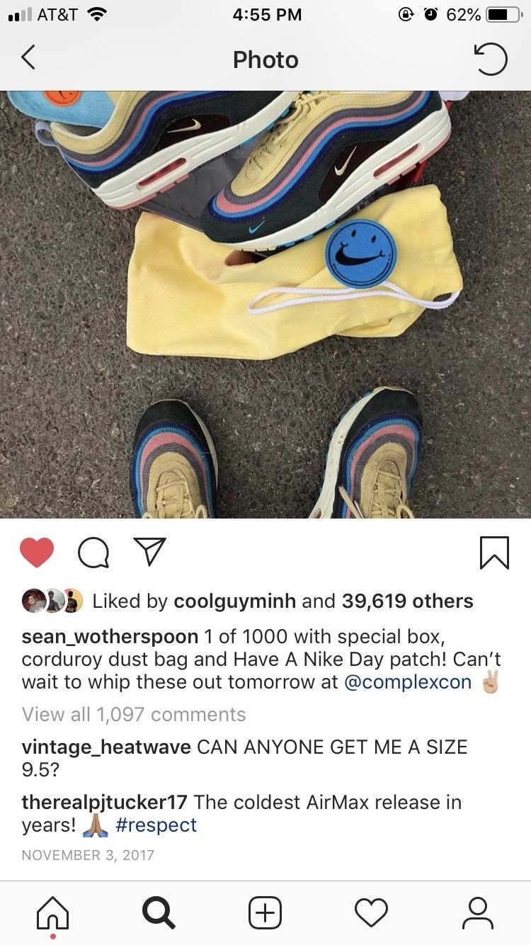 nollege Now Available Nike Air Max 1 97 Sean Wotherspoon Extra Laces Included Pre Owned Size 12 765 Open 12 8 Today 2602 Main St. Instagram Very well made.