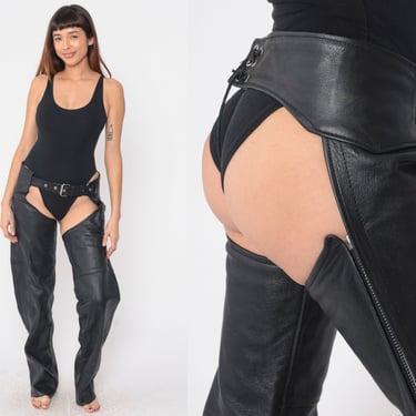 Black Leather Chaps 90s Assless Chaps Motorcycle Pants Biker Chaps Shop Exile Tucson AZ Very well made.