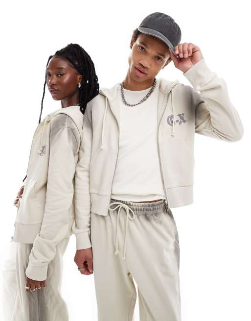 COLLUSION Unisex zip through hoodie in ombre grey wash co ord ASOS Very well made.
