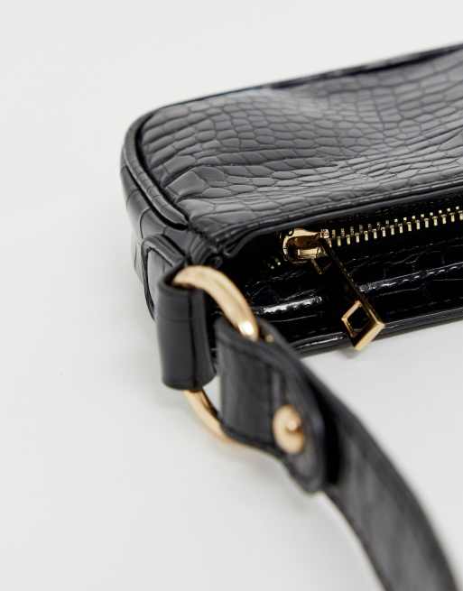ASOS DESIGN croc effect 90s shoulder bag in black Very well made.