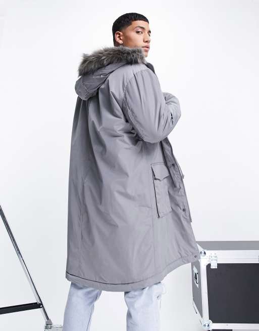 ASOS DESIGN parka jacket with faux fur trim hood in grey Very well made.