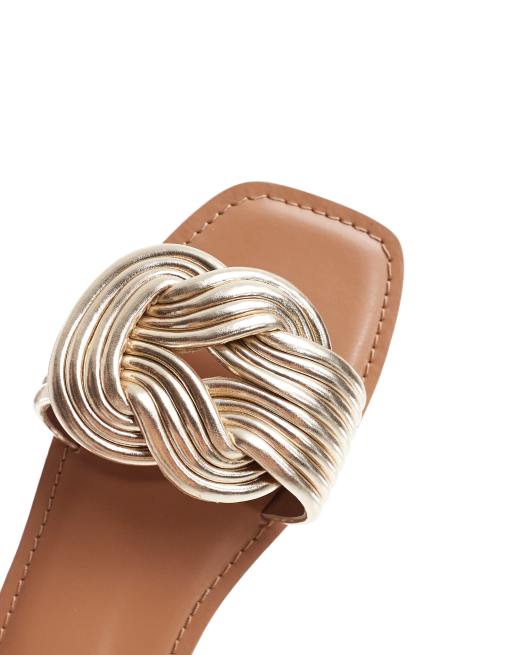 ASOS DESIGN Fifi woven mule flat sandals in gold ASOS Very well made.