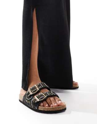ASOS DESIGN Funky beaded double strap flat sandals in black Very well made.