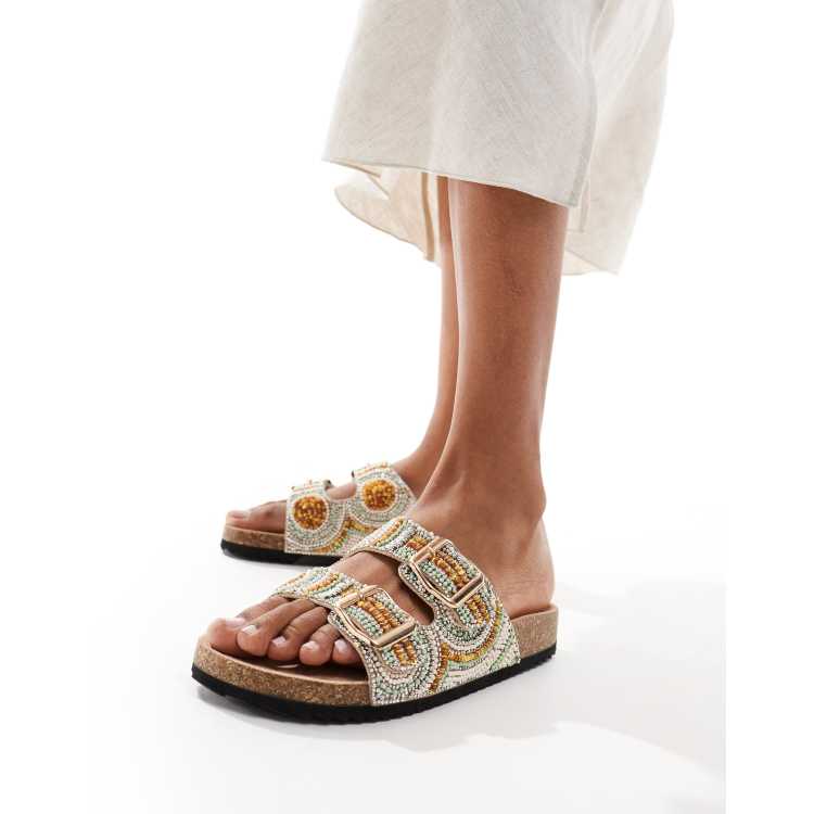 ASOS DESIGN Funky beaded double strap flat sandals in gold Very well made.
