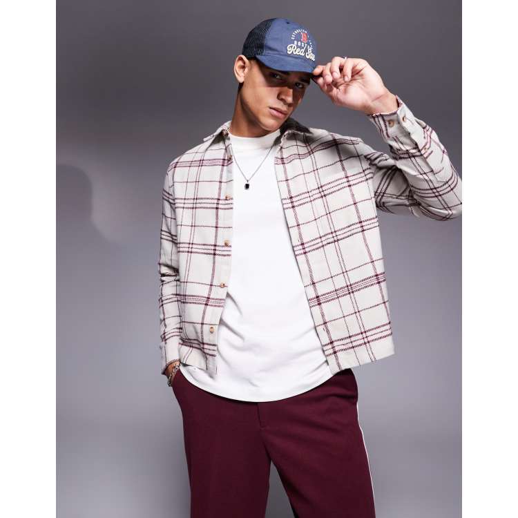 ASOS DESIGN boxy brushed flannel shirt in cream and red heavyweight check ASOS Very well made.