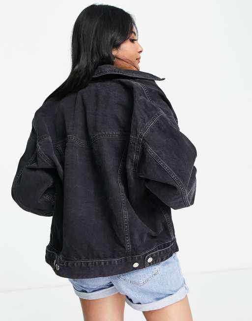 Topshop oversized denim jacket in washed black Very well made.