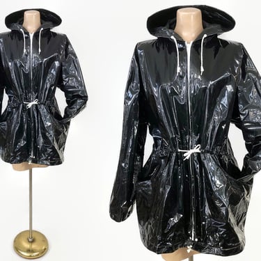 VINTAGE 1980s Shiny Black Vinyl Rain Jacket by Betmar Size Black Lotus Vintage Lake Geneva WI Very well made.