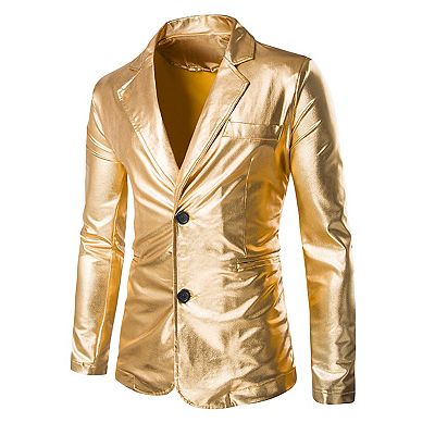 Men s Metallic Blazer Notch Lapel Two Button Party Shiny Sport Coat Very well made.