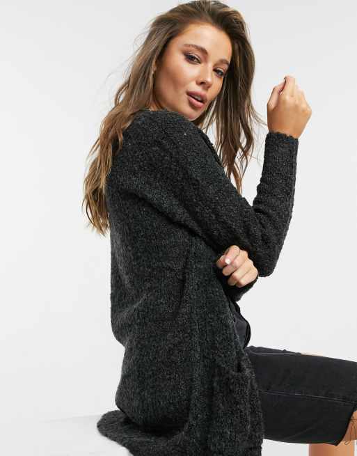 JDY Delight long sleeve knitted cardigan in dark grey melange Very well made.