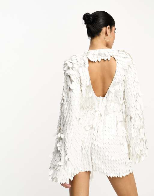 ASOS DESIGN all over faux feather sequin embellished long sleeve mini dress in white Very well made.