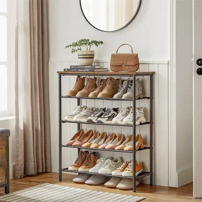 Hot Sale Metal And Wooden Shoe Rack Cabinet 5 Tier Shoe Display Rack Storage Organizer Shoe Racks Stands For Home BestSuppliers Very well made.