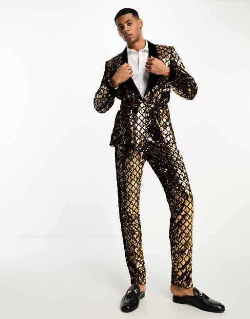 ASOS DESIGN skinny smoking suit jacket in diamond sequin in gold Very well made.